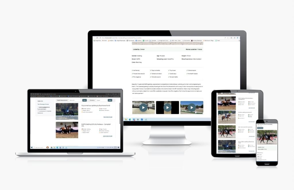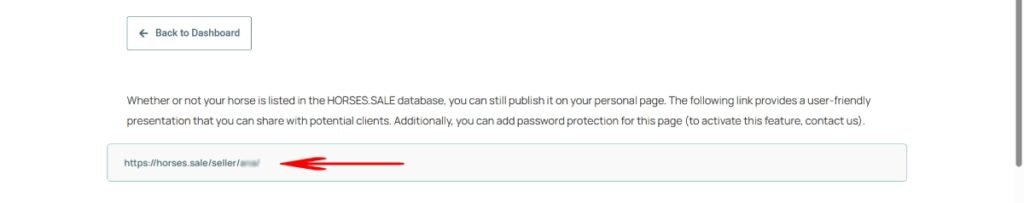 The list of your horses and their cards, with details including photos, videos, pedigree, etc., will be available for potential buyers.