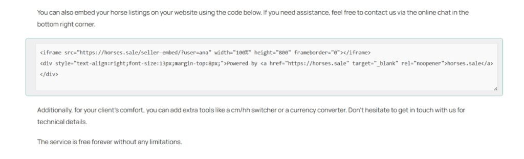 Embedding Horses Details to Your Website